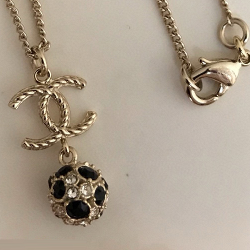 샤넬의 시그니처인 더블 C 로고와 컬러볼이 조화롭게 디자인된 목걸이입니다. 고급스러운 블랙과 화이트 컬러의 조화가 돋보이며, 섬세한 디테일이 살아있는 제품입니다.
