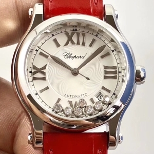 Chopard Happy Sport Medium Automatic Silver Dial Black Leather Watch 2785593001