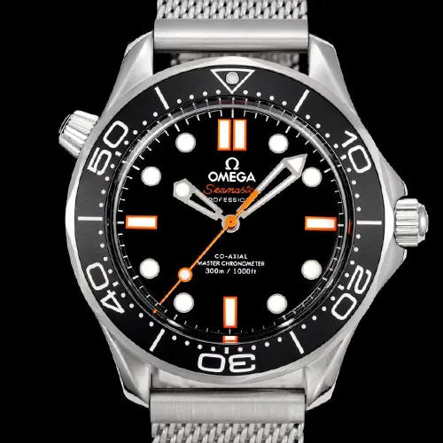 오렌지는 이미 오메가 다이버 시계의 상징적인 색상으로 자리 잡았으며, 이 클래식하면서도 눈에 띄는 색상은 수중 가독성과 안전성을 높일 뿐만 아니라, 씨마스터 특유의 활력과 미학적 디자인을 더욱 돋보이게 합니다.