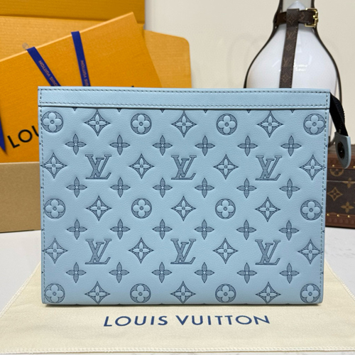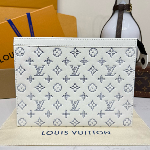 Louis Vuitton 루이 비통 포쉐트 보야주 중형 클러치 화이트 모노그램 엠보싱 블루..