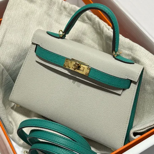Hermes Kelly 미니 켈리 2세대 앱솜가죽 19cm 진주그레이 베로나그린