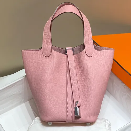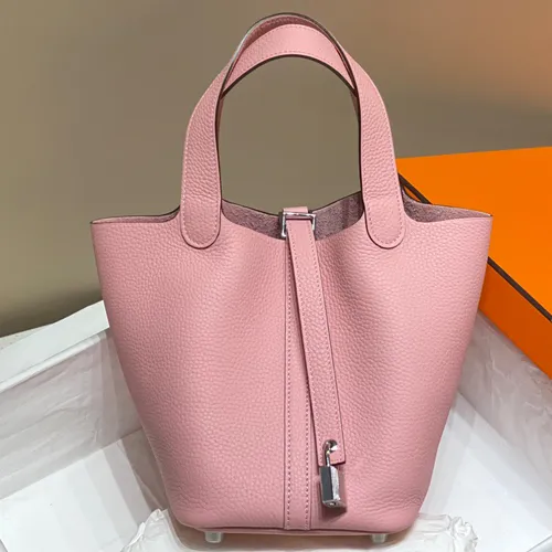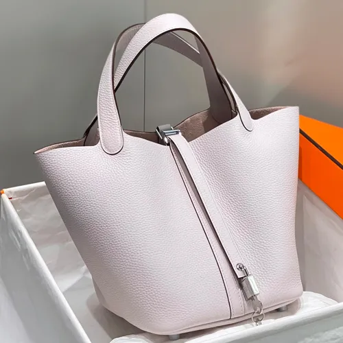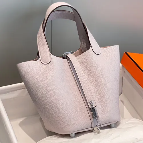 Hermes 에르메스 버킷백 피코틴 락 22 클망스가죽 파스텔핑크 은장