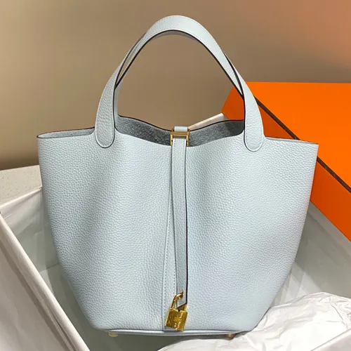 Hermes 에르메스 버킷백 피코틴 락 22 클망스가죽 파스텔블루 금장