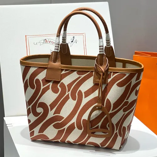 Hermes 에르메스 스티플 토트 쇼퍼백 캔버스 & 레더 28CM 브라운