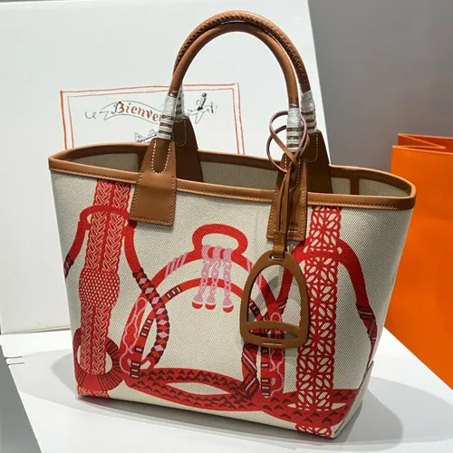 Hermes 에르메스 스티플 토트 쇼퍼백 캔버스 & 레더 28CM 레드