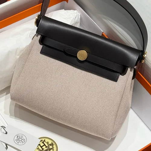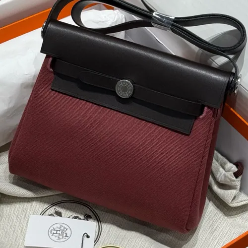 Hermes 에르메스 미니에르 허백 Zip 31CM 베이지 & 버건디 은장