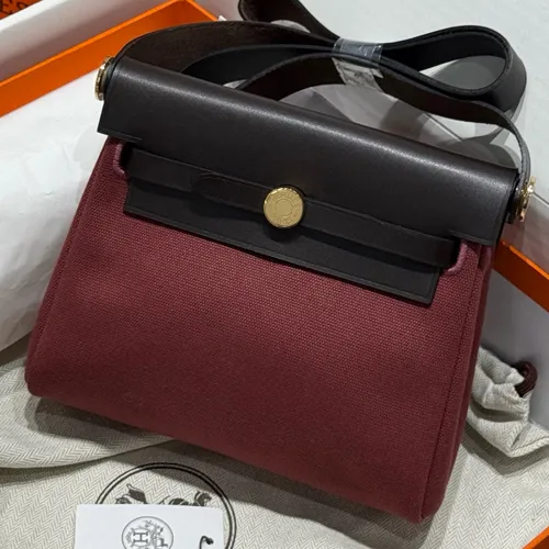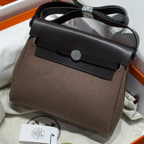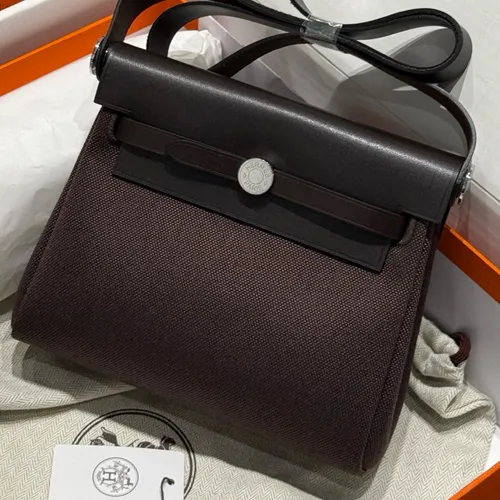 Hermes 에르메스 미니에르 허백 Zip 31CM 브라운 & 레드 은장