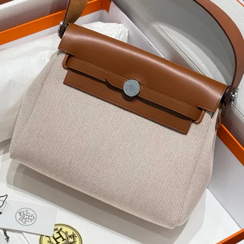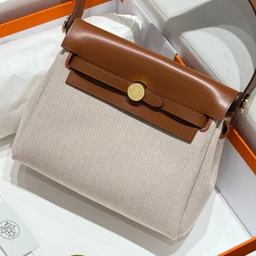 Hermes 에르메스 미니에르 허백 Zip 31CM 베이지 & 브라운 은장