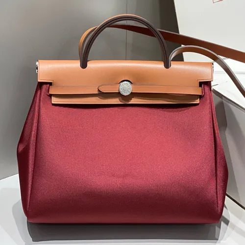 Hermes 에르메스 미니에르 허백 Zip 31CM 베이지 & 버건디 은장