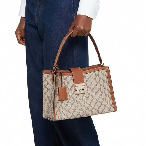 GUCCI 패드록 라지 탑 핸들 베이지 브라운 GG #838991