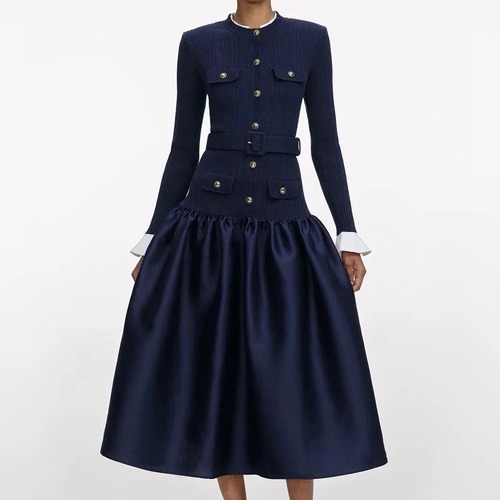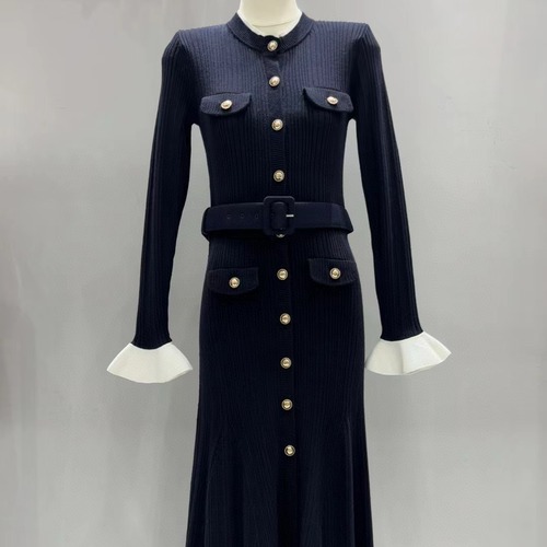 Self-Portrait 셀프 포트레이트 네이비 골드버튼 니트 셔츠 드레스