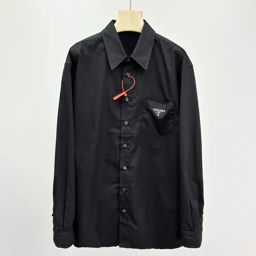 Prada 프라다 남성 프라다 메탈 로고 장식 포플린 셔츠 블랙
