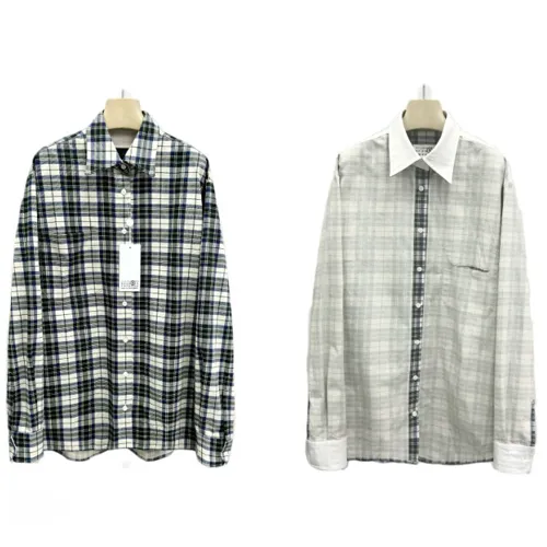MM6 Maison Margiela 남녀공용 양면 체크 버튼다운 긴소매 셔츠 블랙/화이트