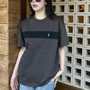 YSL 생로랑 블랙 스트라이프 배색 반팔 티셔츠 1+1