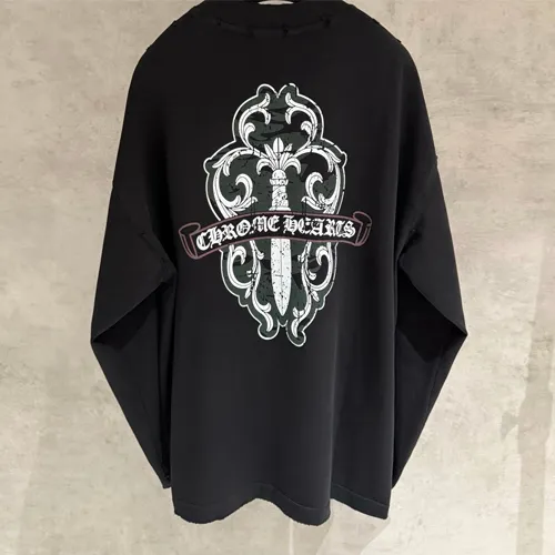 Chrome Hearts 크롬하츠 크로스 심플 자수 장식 오버핏 맨투맨 티셔츠