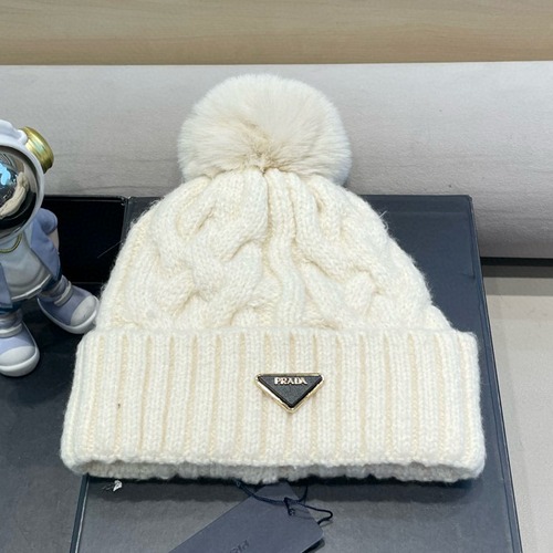 Prada 프라다 퍼 볼 니트 비니 – 두꺼운 꽈배기 짜임 울 니트 방한모자